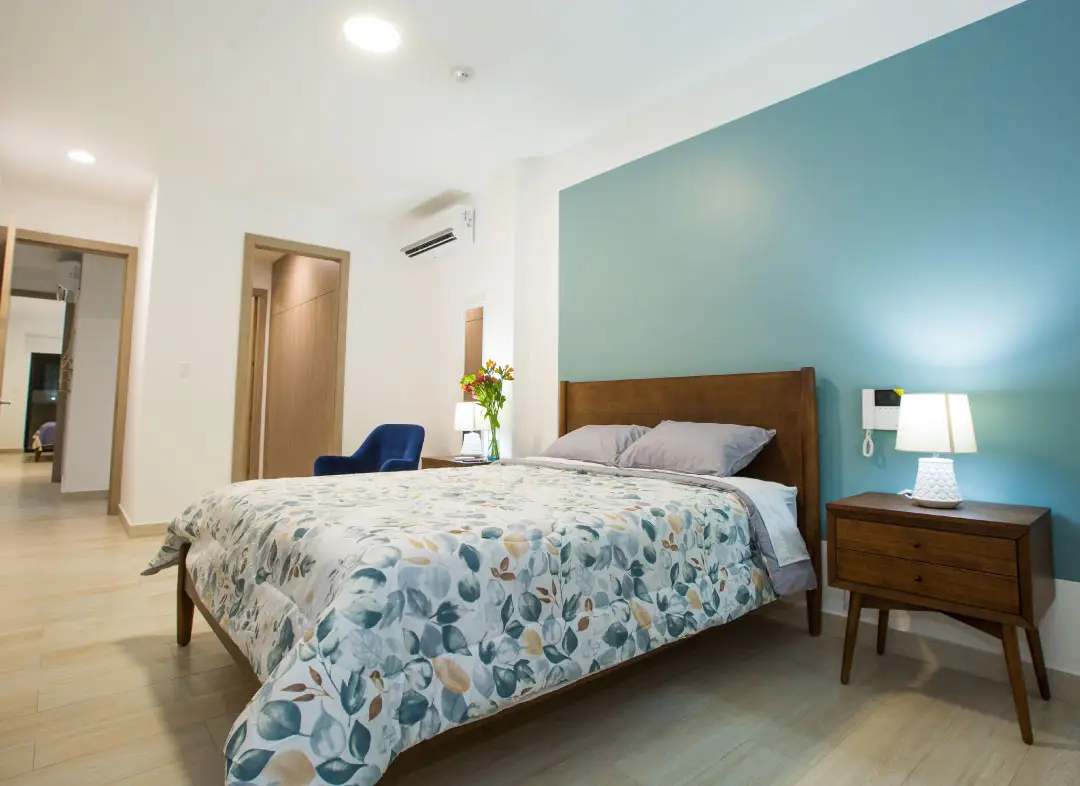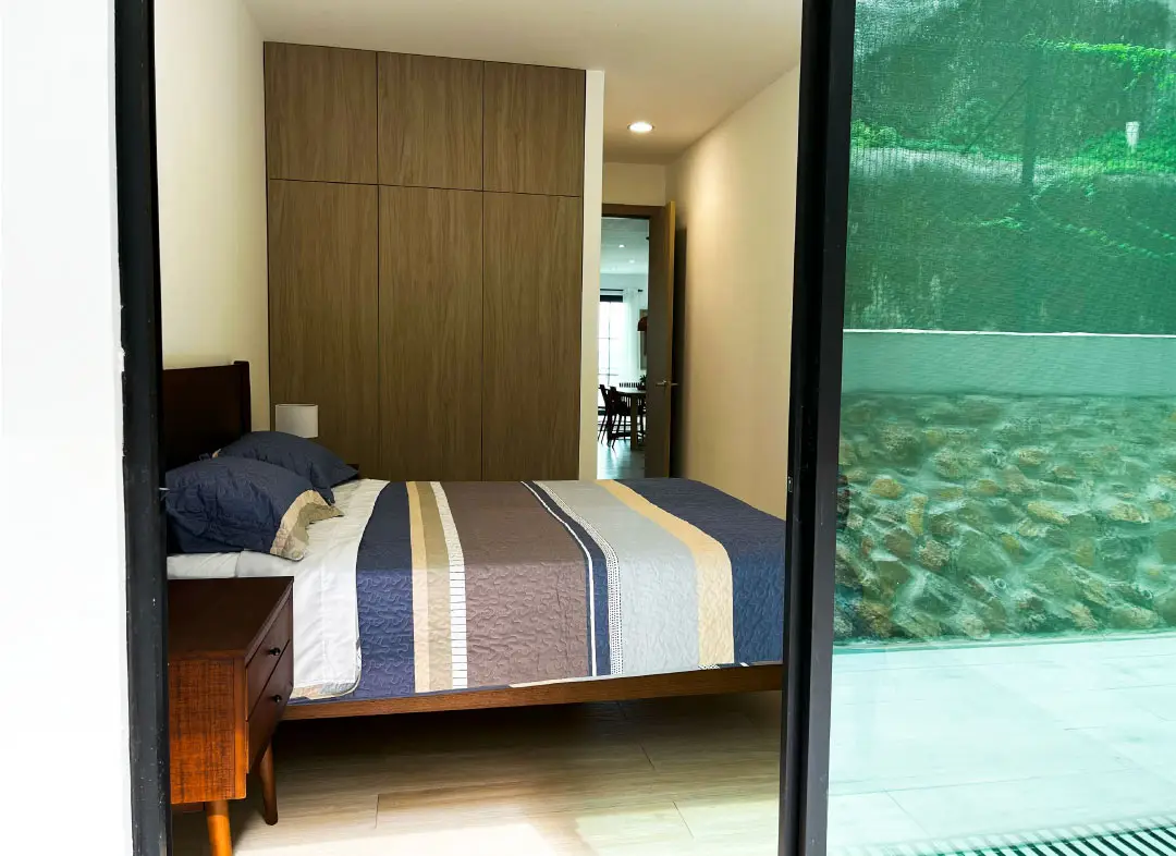 • Segundo dormitorio con cama Queen, baño privado y aire acondicionado. Este dormitorio ofrece privacidad y todas las comodidades para una estancia relajada.