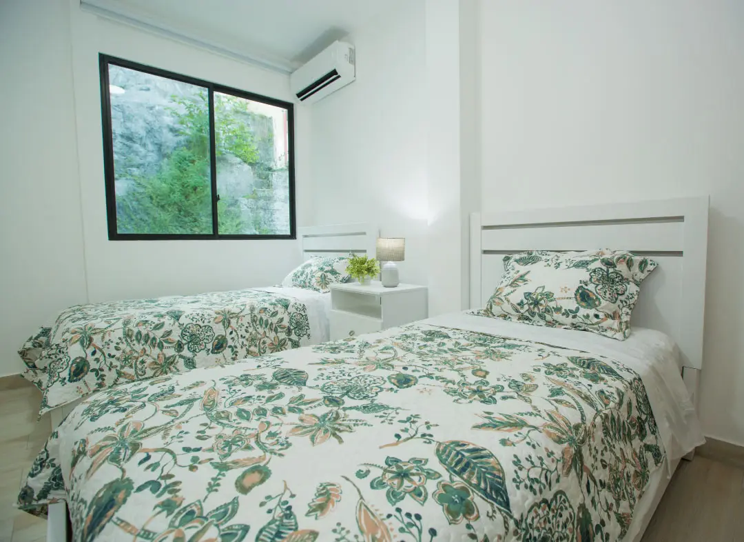• Tercer dormitorio con dos camas dobles, aire acondicionado y un espacioso closet.