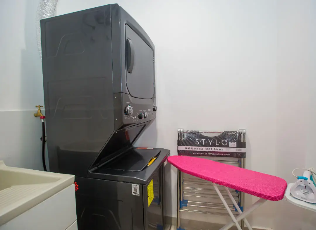 • Cuarto de lavado completamente equipado con lavadora, secadora, plancha, y todos los productos esenciales para la limpieza diaria.
